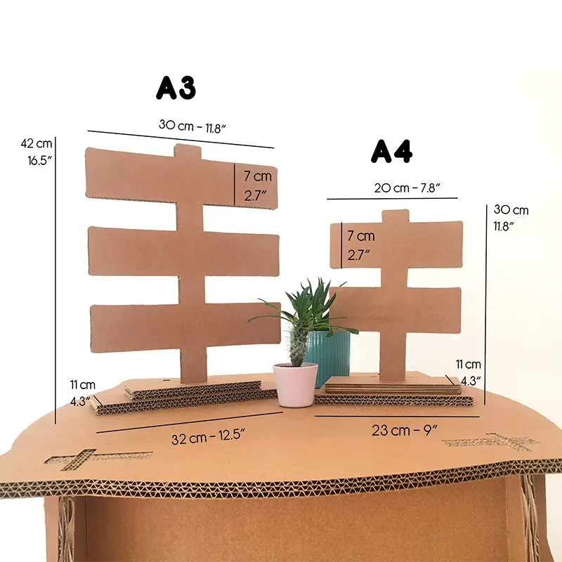Cartone tripla onda 100% riciclato, robusto con spessore di 14 mm;